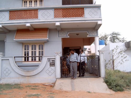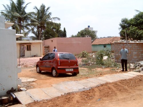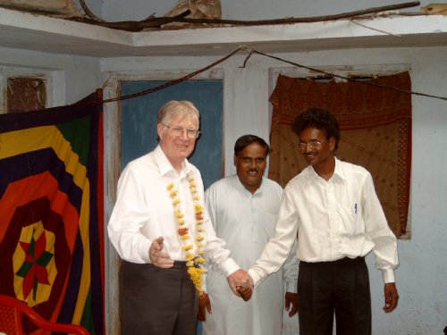 A collection of photographs showing Pastor Gopi Daniel's house and building plot for his church. There are also shots of Roger and Simon with Pastor Gopi Daniel, his wife Shanti and their sons Jackson (6 years) and Joshua (10 months).