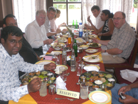 The team went for lunch after leaving the palace in a lovely hotel. Fredrick had a meal traditional to Southern India.