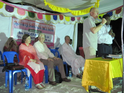 In the evening the team went to the final gospel meeting where Lydia gave a testimony, Jon preached and Roger gave some prophetic words. After Pastor Jackson preached about 100 people responded. Following the meeting many people came forward for prayer by the team. After praying for the last person, the rain started and there was a torrential downpour, but all the equipment had been packed away.