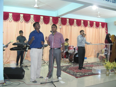 Roger preached at the Kanada service and at the English service. In the Tamil service Lydia, Jon and Tina shared and Pastor Jackson pulled eveything together. Vic was unwell and stayed at the hotel.